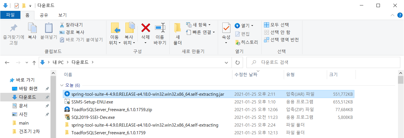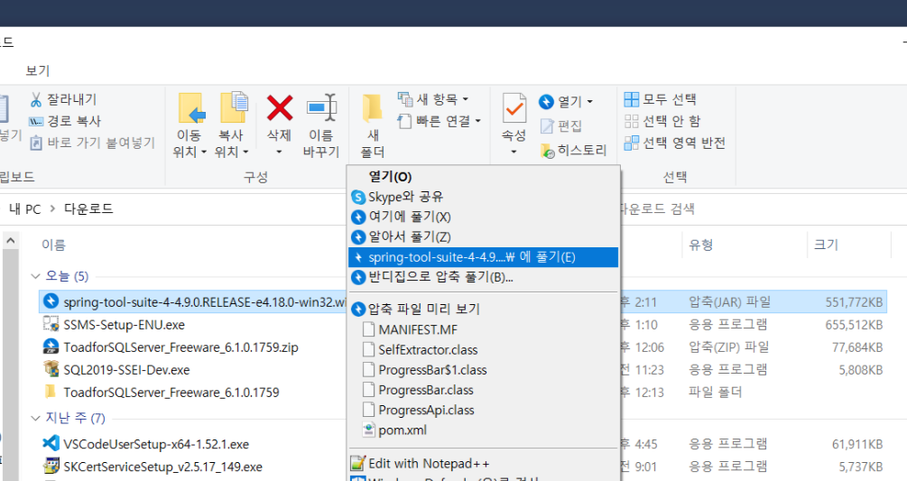 STS 사이트에서 원래 zip 파일을 줬던거 같은데 갑자기 이번에 받으니 jar로 받아져서 매우당황..
