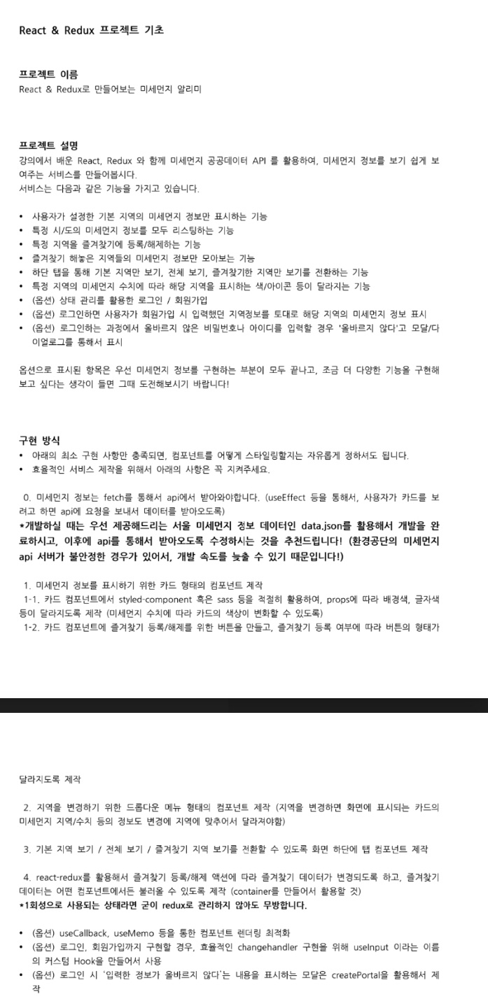 학습에 대한 결과물도 스타벅스 홈페이지 + 미세먼지 알리미의 코드가 끝인데,